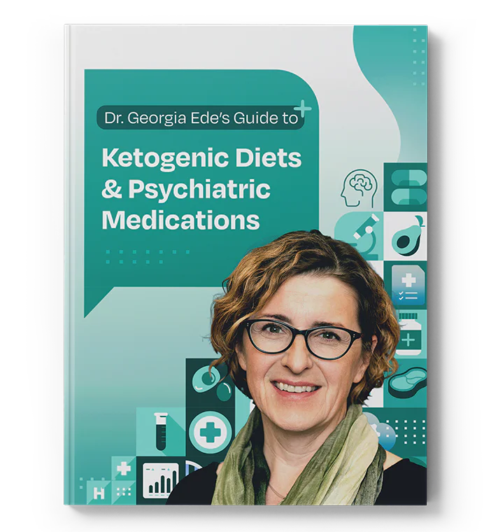 Download Harvard-trained psychiatrist Dr. Georgia Ede’s evidence-informed guide to managing ketogenic therapy and medications—covering food/med interactions, monitoring, how to find support, and safe tapering principles.